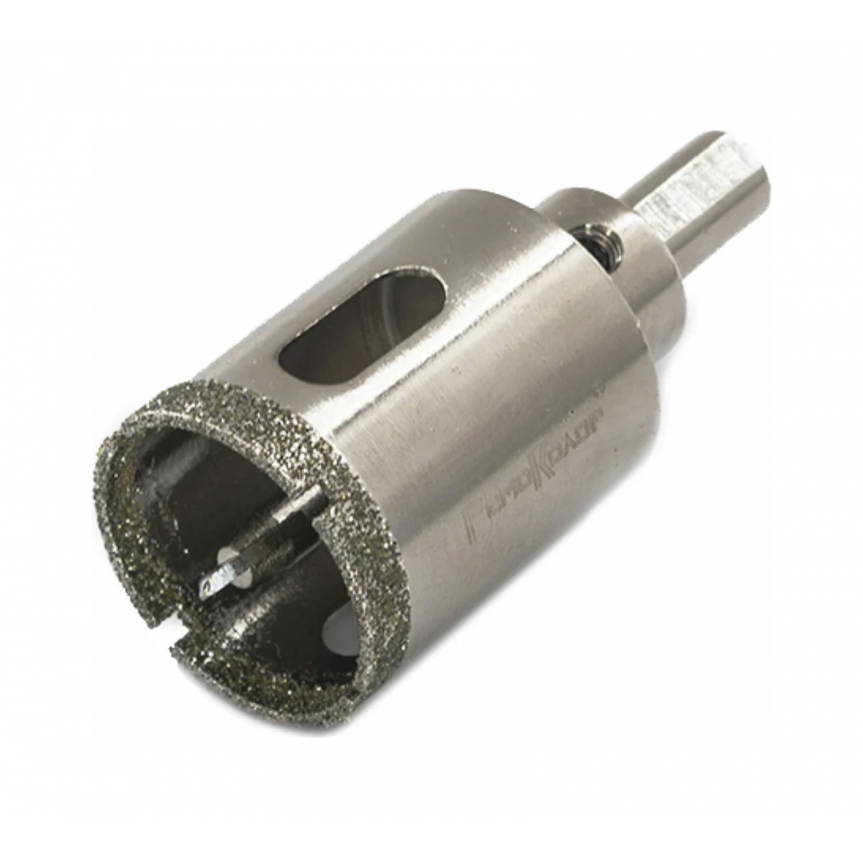 Алмазная коронка предназначена для сверления отверстий большого диаметра в стекле, керамической плитке и керамограните. Используется с дрелями и шуруповертами в безударном режиме, обеспечивая чистый и аккуратный рез без сколов и трещин.